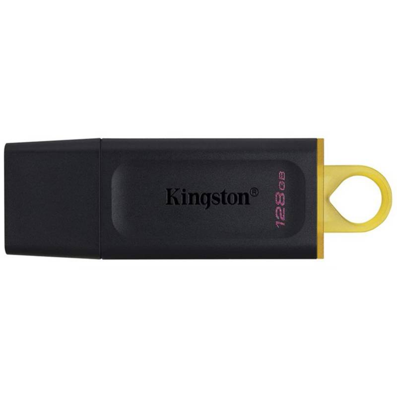 La memoria USB Kingston DataTraveler Exodia 128GB ofrece almacenamiento fiable y rápido con conectividad USB 3.2 Gen 1, ideal para transportar y transferir grandes volúmenes de datos con comodidad y estilo gracias a su diseño en negro y amarillo.